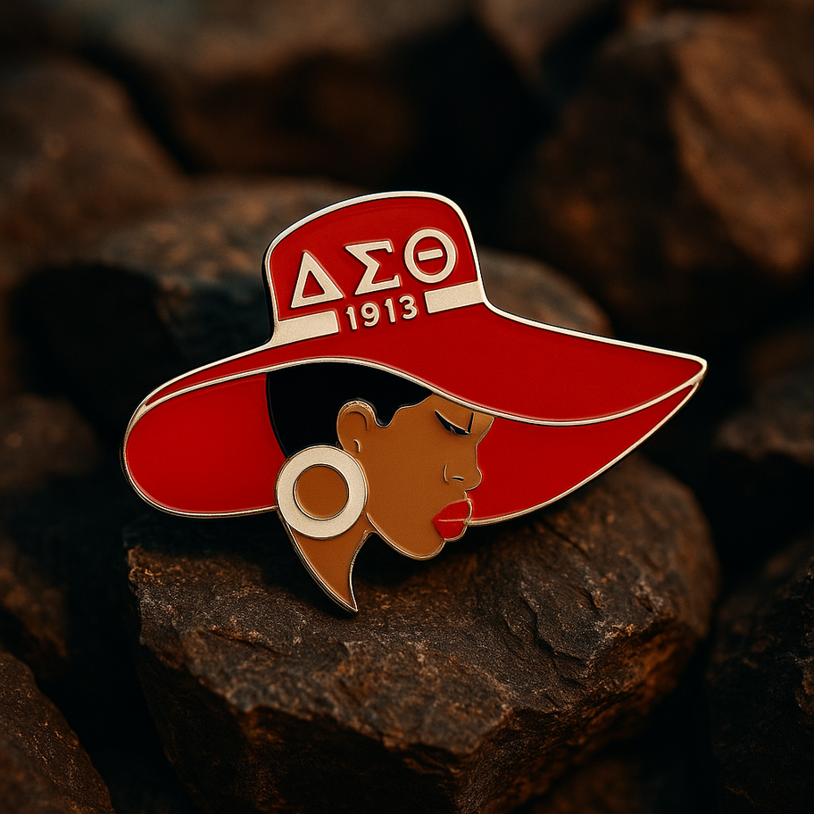 Show off your sorority with elegance. This colorful characterized pendant featuring a stunning lady.